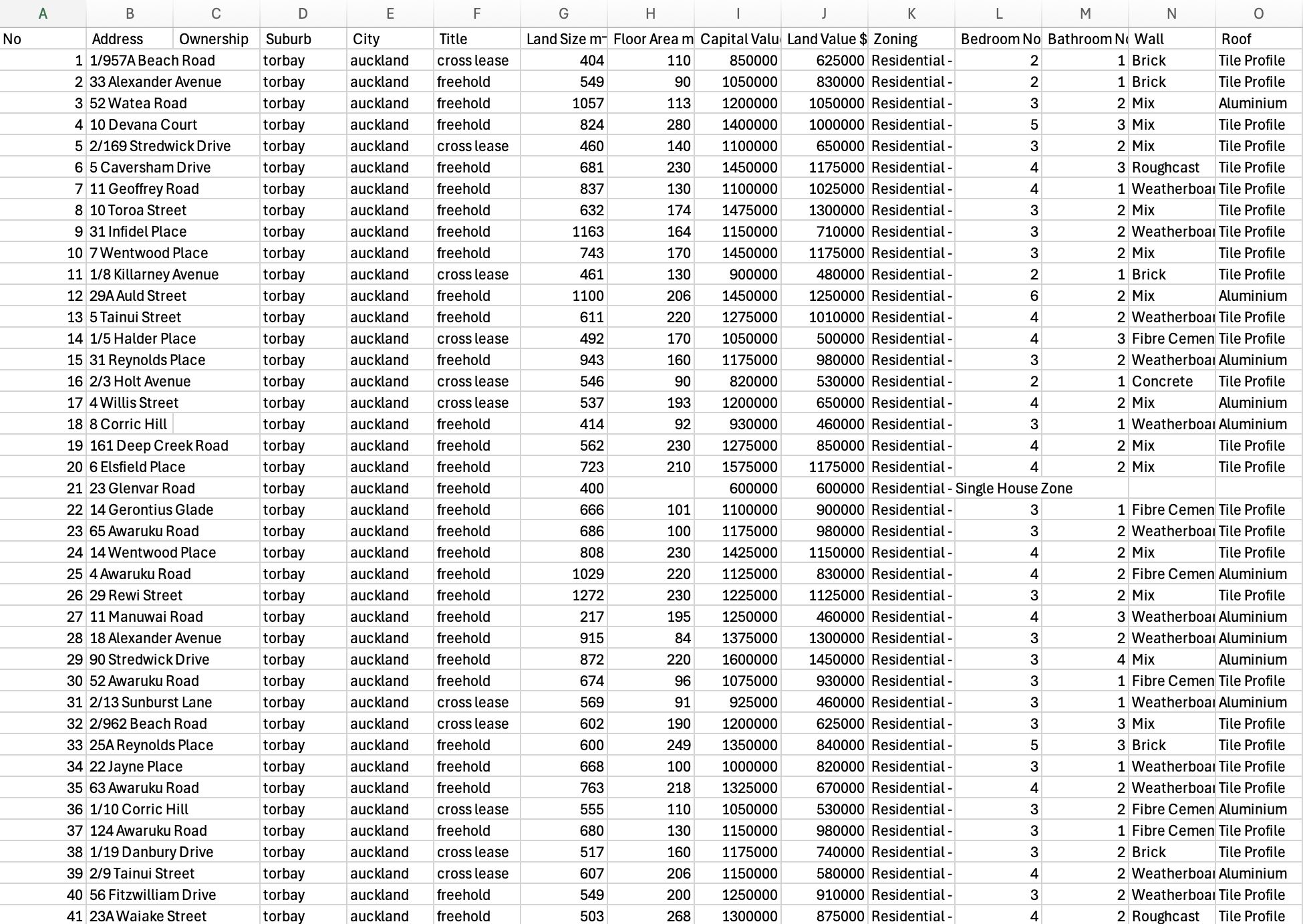 - Property number, address, suburb, and city
